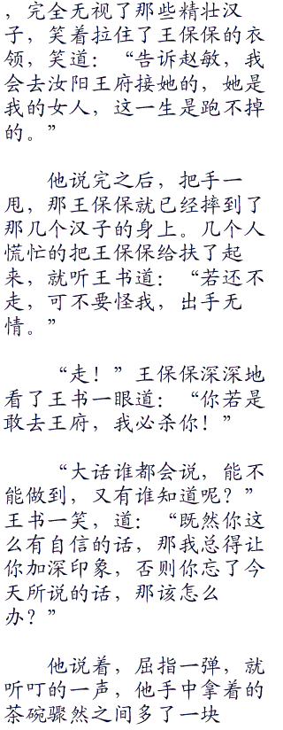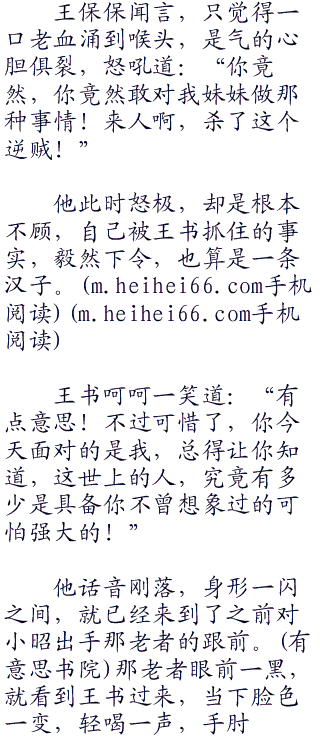 只是一个闪烁之间,王保保就已经失去了所有的保护,被王书扯到了他和小昭的身边,笑道:“真是人生何处不相逢啊!真没想到,竟然会在这里,遇到你!”