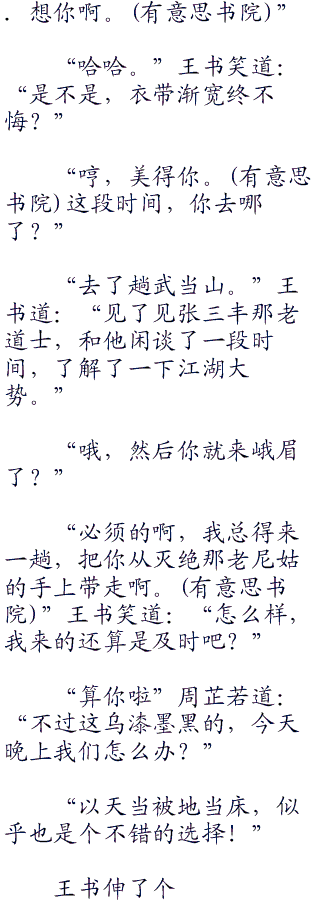 王书目光一闪,忽然一笑道:“师太,你我相识多久了?”