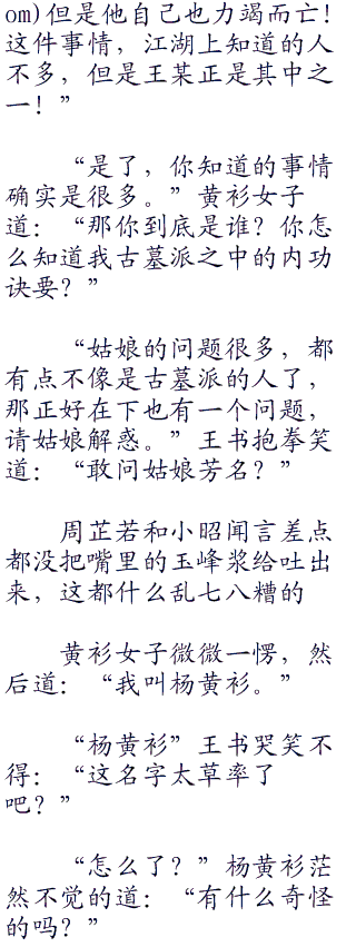 黄衫女子听到王书面不改色,几句话的功夫,就说出了古墓派内功心法的奥妙之处,一时之间面色也起了不少的波澜。