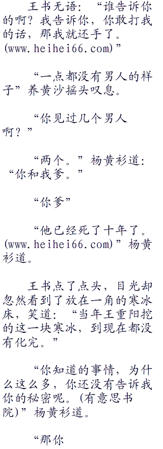 “恩。”杨黄衫点了点头,然后道:“那好把,你既然已经学会了我古墓派的武功,那你应该告诉我,你为什么会知道这么多了。”