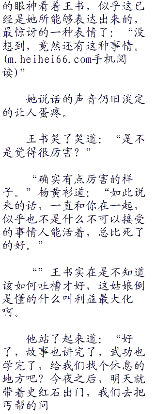 “不可思议”杨黄衫看着王书的眼神有点奇怪:“你为什么不学九阴真经?”