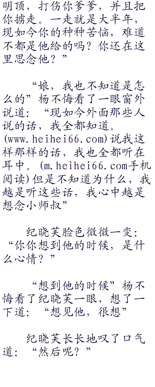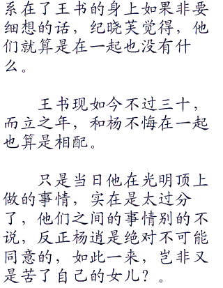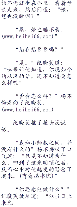 “娘”杨不悔叫了一声,然后摇了摇头道:“睡不着”