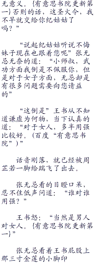 张无忌看王书和周芷若之间说话的语气态度,心中不禁一愣,愕然道:“小师叔,您和周姑娘这是”
