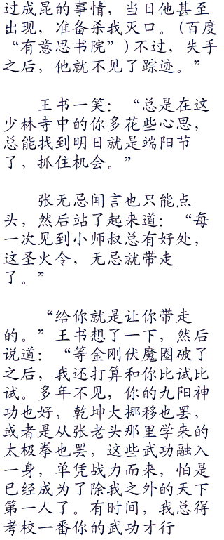 “自然要帮你。”王书道:“当日去冰火岛把他接回来的人正是我,本想把他接回中原之后,找到成昆,完成他的一件心愿,却没想到,成昆没有找到,他却已经被少林所擒。”