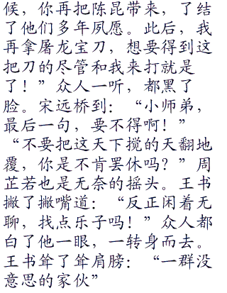 赵敏从另外一头钻出来,看了看王书,叹息道:“造孽啊造孽”王书都快哭了:”你们这是什么乱七八糟的”武当七侠不知道从