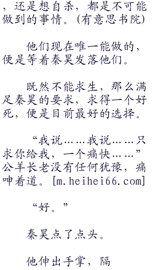 这个魔教长老的心思,他猜也能猜到,无非就是眼见死路一条,求生无望,便觉得宁可自杀,也不能将一身所学武功说出来,便宜了他。可是魔教长老忽略了一点,在秦昊的面前,他就是想要自杀,也得经过秦昊的同意才行,否则,想死也死不了。
