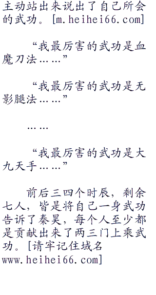 “想死,我可以成全你,不过要先将你所学武功,都说出来,不说出来,你就继续体验这生不如死的滋味,直到你愿意说为止。”秦昊冷道。
