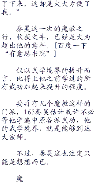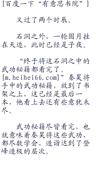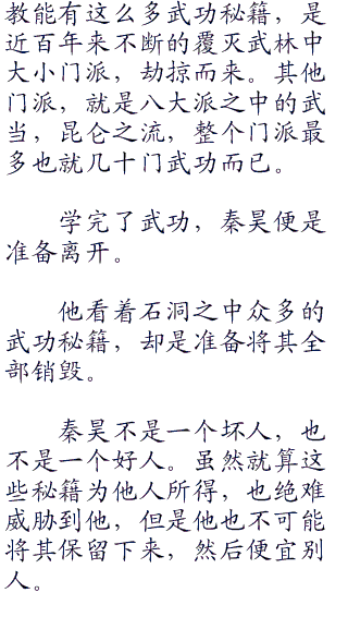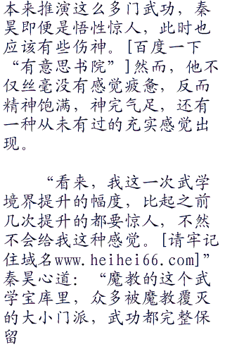 如果是换一个人,进入了魔教的这处武学宝库,最多也只能学个两三门上乘武功,便只能作罢,对武功的提升,纵然有,也极为有限。但是对于秦昊而言,则是完全不同,他可以将这近千本武功秘籍通通学会。这样一来,他的武学境界大16增,便是必然的事情。