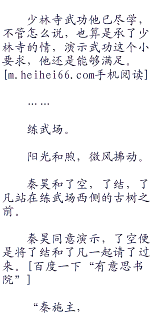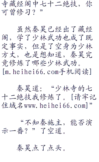 秦昊微笑道:“这还要多谢了空方丈,愿意大开方便之门,让我进藏经阁观看少林武学。”