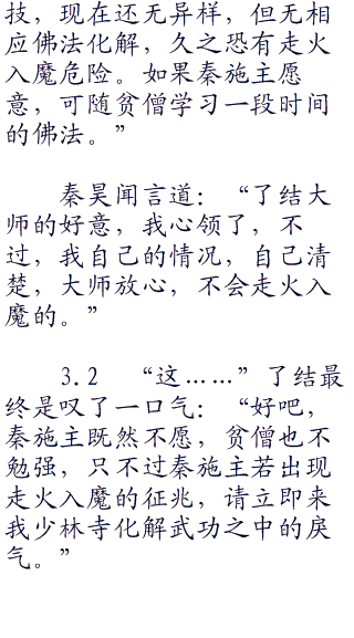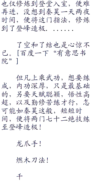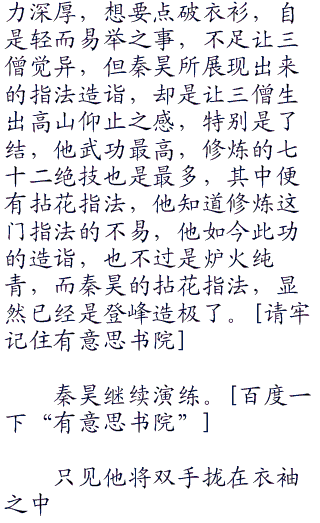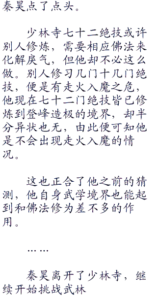 秦昊进入藏经阁,观看少林武功,而且还着手进行修炼,必然是会极大耗费精神,而且少林武功,需相应佛法境界,才好修炼,特别是七十二绝技,更是如此。若是强加修炼,难以练成不“四一三”说,也会耗费心力。