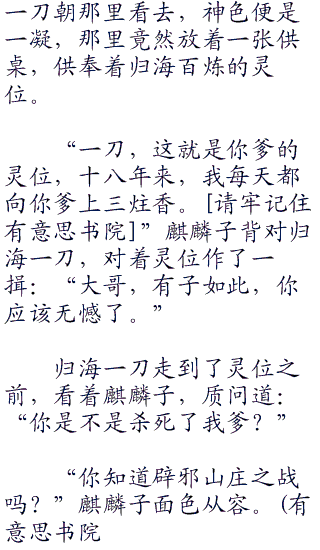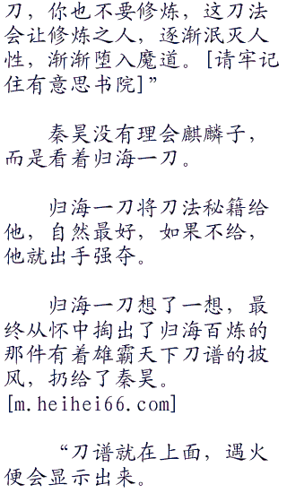 他知道归海百炼的死,和麒麟子无关,但是他也不准备告诉归海一刀,麒麟子是生是死和他没有关系,只要让他将麒麟门的武功得到手便可。而且,既然归海一刀来了,很有可能归海一刀已经修炼了雄霸天下和阿鼻道三刀,他也要将其得到。