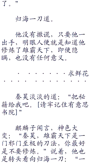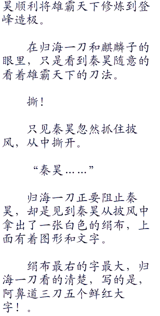 他怕秦昊,但却不怕归海一刀,归海一刀虽说是大内密探,但是武功也不过一流而已,绝破不了麒麟阵。