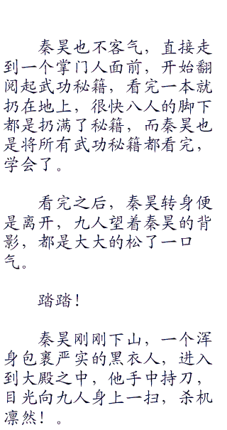 秦昊上了崆峒山,报上了自己的名字,就是被恭敬请到了大殿之上。