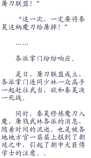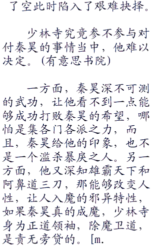 武林之中,各门各派,俱都是人心惶惶,决定齐聚少林,商议对付秦昊一事。