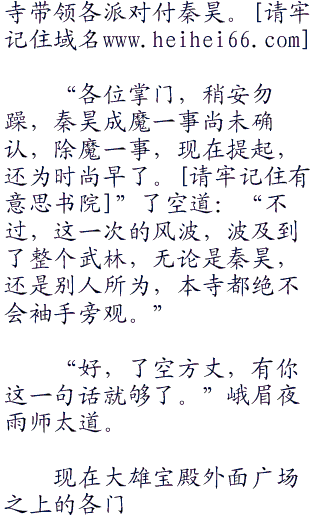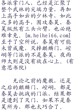 这些门派的掌门人,之所以齐聚少林,一是因为少林乃是天下第一大派,事关武林安危,自然需要少林出面,二是因为少林曾和秦昊有过交手,知道秦昊的武功路数,这样对付起秦昊来,会容易一些。