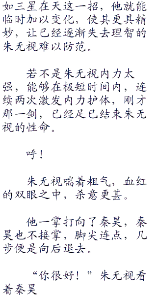 然而,在和秦昊交手之后,他心中已经不如以前那般笃定,甚至想着改变计划,现在就杀死秦昊。秦昊的武功出乎他意料之外,已经不是只要他想,便能够杀得了的了,他不能放任这样一个武功不弱于他的大宗师高手继续成长下去。