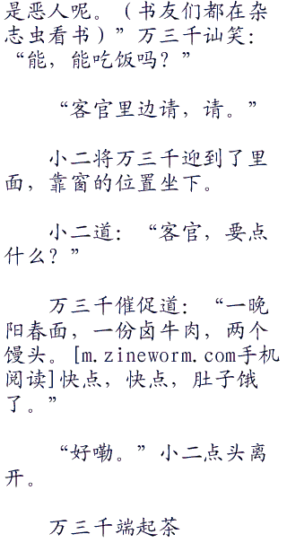 万三千看了一看,小心翼翼问小二道:“这里做不做外来人生意?”