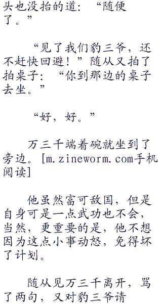 小二提着茶壶连忙过来提万三千拍去身上的瓜子,“客官,不好意思,这里的人,都是恶惯了的。”