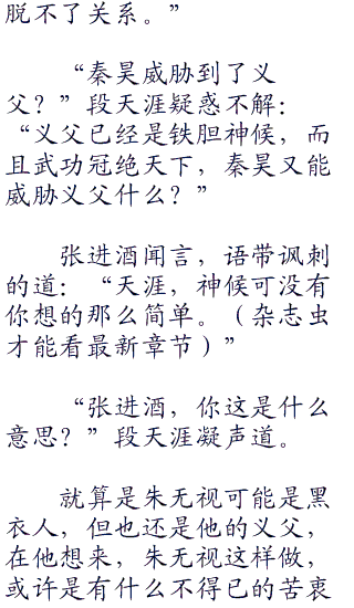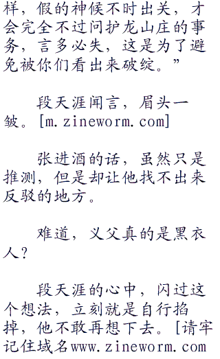 段天涯面色微沉,问道:“张进酒,你说义父是黑衣人,你有什么证据?”