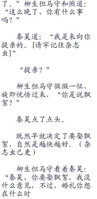 秦昊回来了,她自然十分高兴。同时,她也是想起秦昊离开之前,说要回来娶她的话,一想到这里,她的心中便是不由自主的有些忐忑。