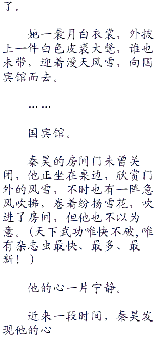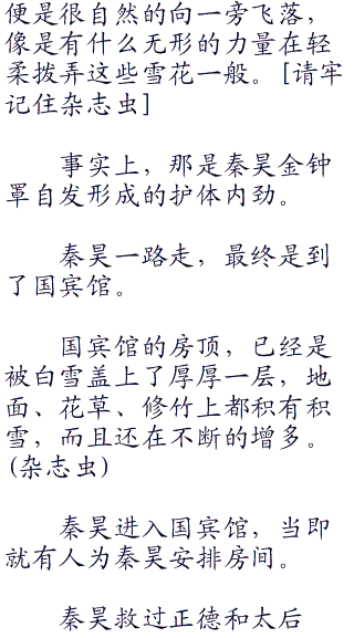 他持剑而走,也未曾打伞,然而雪花却是根本落不到他的身上来,往往是刚要触碰到他的身体,立刻
