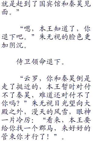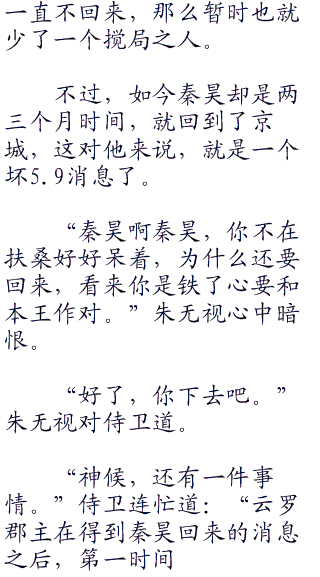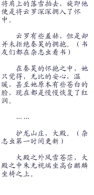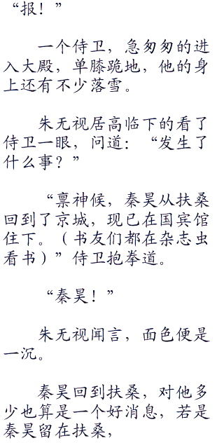秦昊这一次去中原,是要和朱无视进行最后的决战,凶险无比,柳生飘絮和柳生雪姬都是十分担心秦昊的安危。