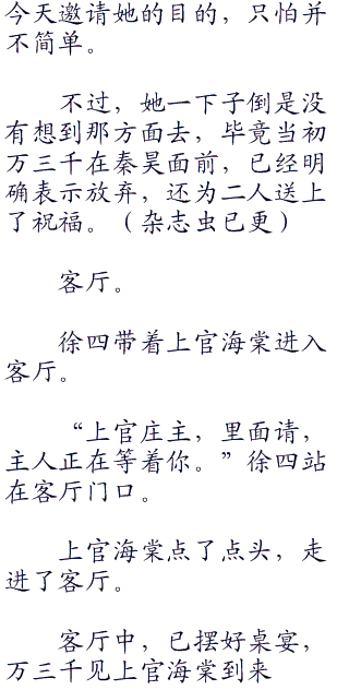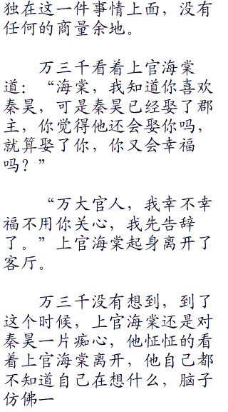“这样也好,秦昊你娶你的公主,郡主,海棠这一次我无论如何,都是不可能让给你了。”万三千自言自语。