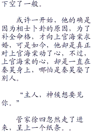 本来,虽然上官海棠是他命中注定的有缘人,但是上官海棠喜欢秦昊,而秦昊又是武功高强,一表人才,两人也算是极为相配,他也是真心祝福两人在一起能够幸福。