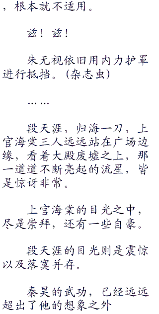一层又一层的内力护罩,被轻易洞穿,一层又一层的内力护罩,又重新展开。短短刹那,秦昊长剑不知道洞穿了几十上百层的内力护罩,但是朱无视内力深不可测,竟然能够跟上秦昊破坏的速度,形成了一个脆弱的平衡。