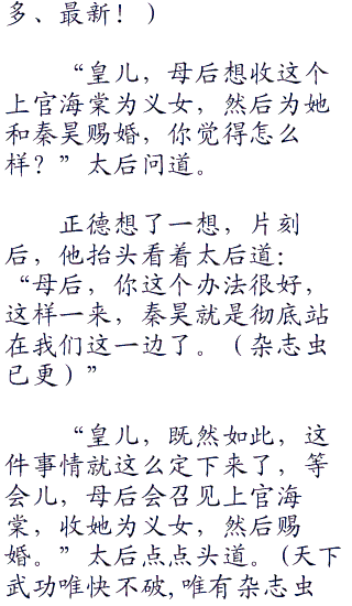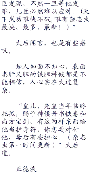 正德接着道:“更重要的万三千是神候的人,这样一来,神候的财力支援也是会因此断掉,这样一来,纵16然神候想要谋反,也不足为虑了。”