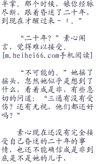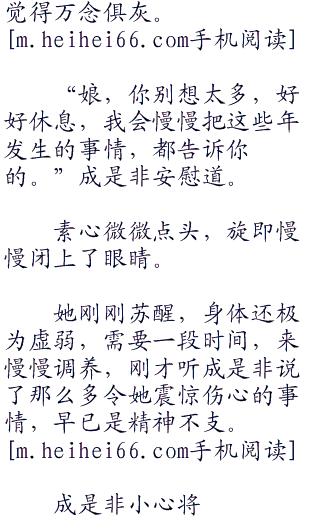 成是非看着素心,那种血脉相连的感觉,越发强烈,不由喊道:“我是非儿,娘,娘……”