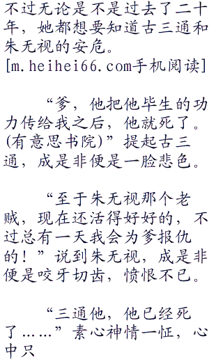 她清楚的记得,朱无视致命的一掌打向古三通,她挺身而出,为古三通挡下半掌,接下来她便是失去了意识……