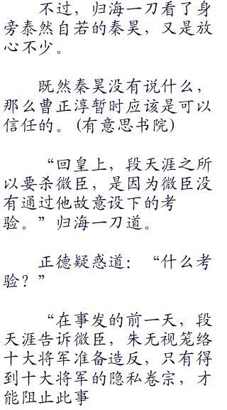 比如,段天涯设计试探他,为什么不通知朱无视?同时,段天涯那一剑没能刺死他,真的是他躲避的及时?还有,究竟是谁通知的曹正淳?