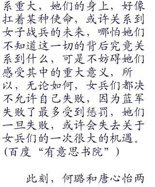 他这会的心情可想而知了,蓝军指挥官看着侦查的士兵们沉声道:“我不想听这些,也别给我找理由,继续给我找,就算挖地三尺,也得把女兵们的踪迹给我找出来。”