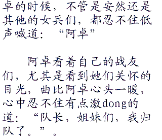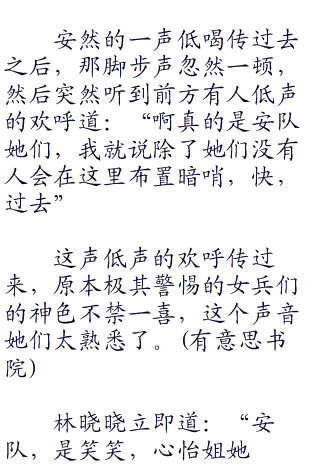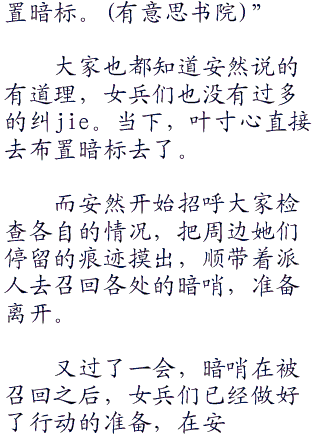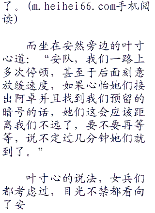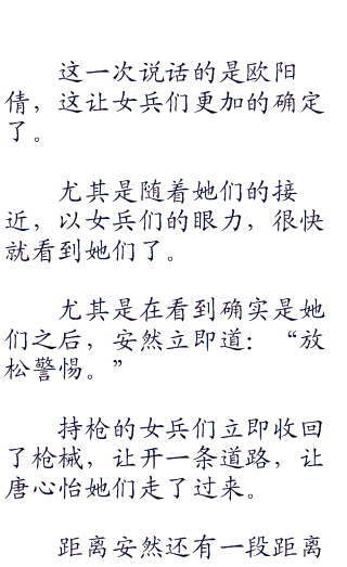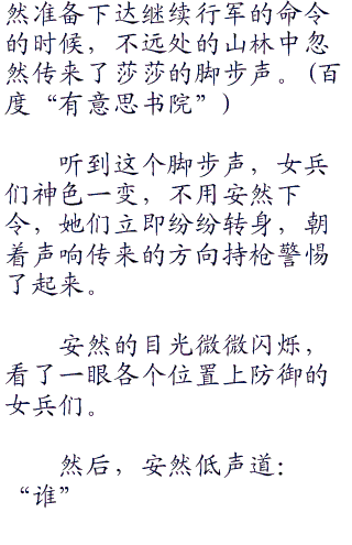 虽然她们休息的时间够长了,不过,女兵们丝毫不担心她们的位置会暴lu。