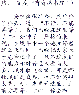 所以在二十分钟之前,安然决意让大家找个隐蔽的地点暂时的休息一下,也等待一下唐心怡她们的消息。