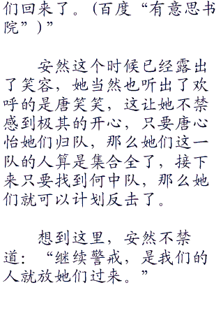 安然小队在从酒店里突围出来之后,除了唐心怡、唐笑笑以及欧阳倩三个接应曲比阿卓的人之外,其他的人,都在这里了,她们从突围出来之后毫不停歇的快速的在山林中挺进,数个小时之后,已经远远的脱离了蓝军的包围圈。
