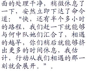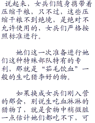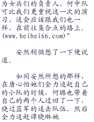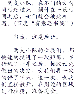 唐心怡的话,女兵们能够想象得到她们追赶的速度,不然也不会这么快就追上来,要知道这中间的时间看似不长,也就几个小时,可是以女兵们的速度,几个小时,这其中的距离,可不是那么容易追赶的。