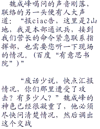 通讯兵的话,让魏成峰他们的目光微微一闪,露出一丝喜意。