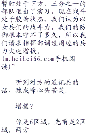 “报告首长,我们是6区域的驻守部队,我们在两分钟以前遭受了女兵们的突然袭击,她们的战力太强,我们