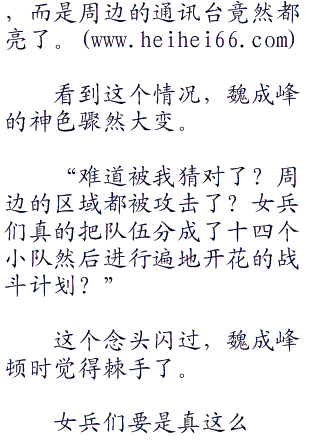 魏成峰神色一变,道:“你猜对了,我们的部队又被偷袭了,女兵,又是女兵,她们难道是分头行动,想要遍地开花?”