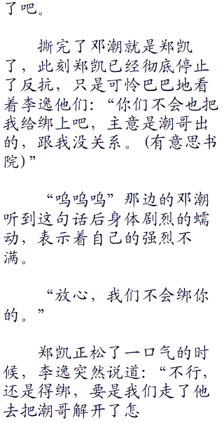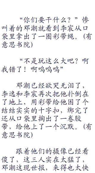 邓潮首当其冲,李逸和李宸合伙把他狠狠的按在了地上,邓潮除了惨叫,完全动弹不得。