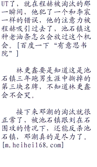 李宸这边还能理解,邓潮他们那边到底发生了什么事啊?前前后后不过十分钟,居然三个人连续被淘汰,而换掉的只不过是池石镇一个人?这也太奇怪了吧?要知道金钟国都宋智孝都在这里,也就是说那个战场上只有池石镇跟刘在石两个人,就算池石镇干掉了林更鑫,刘在石一拖二,这也太厉害了吧!