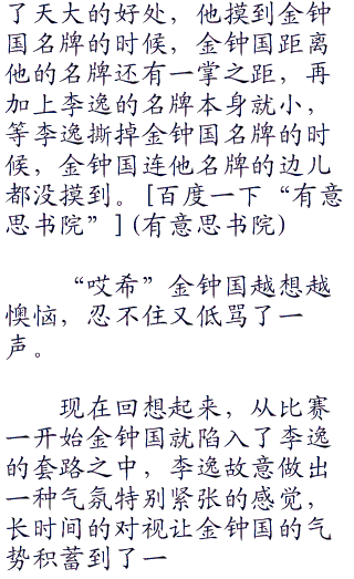 两人相撞的一瞬间,心底同时升起了这个想法,没有这样正面的接触,你永远无法想象金钟国那健美先生一般的身体里到底蕴含着多么夸张的力量。