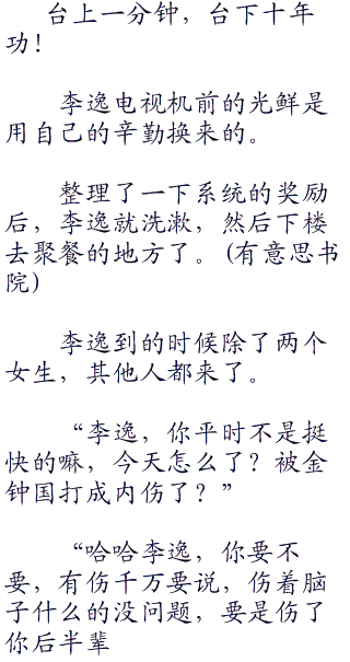 事后刘在石又把自己的疑问说了出来,李逸笑着告诉他自己一直都隐藏着真是实力在。