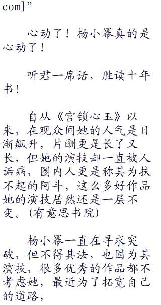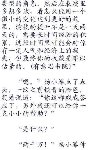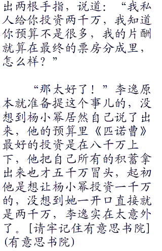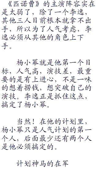“没错!”听到杨小幂的回答,李逸重重地松了一口气,她这么说还证明她还有救,如果她连这点都猜不出来,李逸还得考虑这个角色到底应不应该交给她。