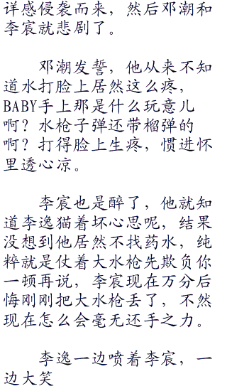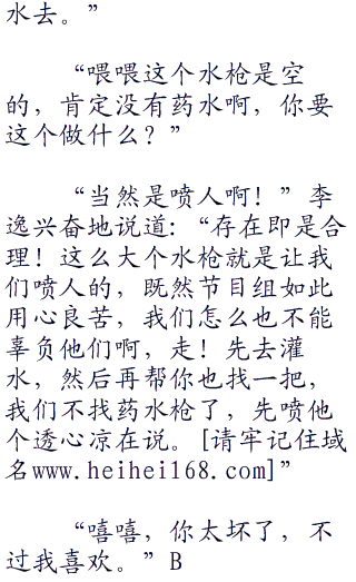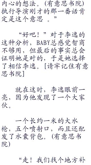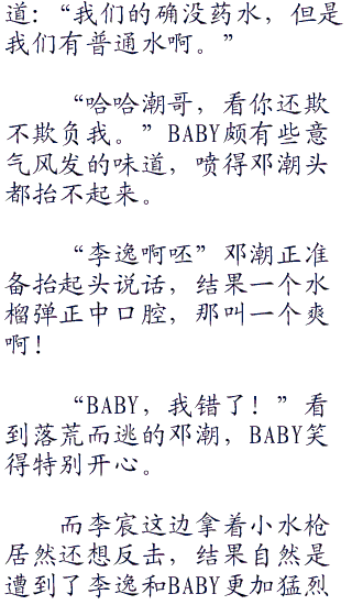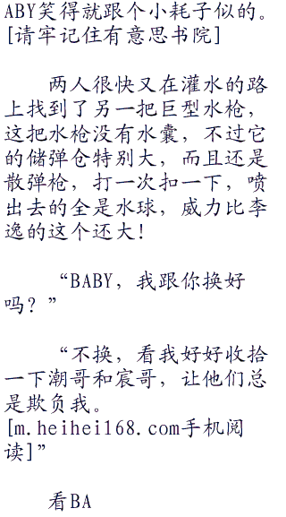 “李逸,这里!这里!”baby在一个屋檐边拿到水枪后高兴得拿给李逸看。
