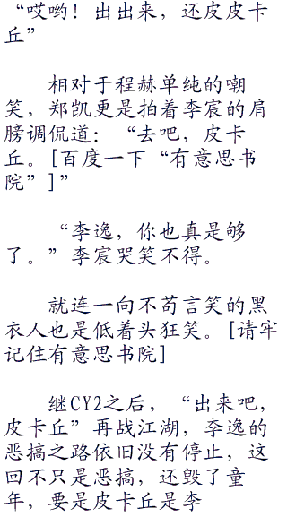 “好了,我们快复活宸哥,然后找药水去。”李逸说完就双腿一叉,右手猛地指向前方,大吼道:“出来吧,皮卡丘,复活,李宸。”