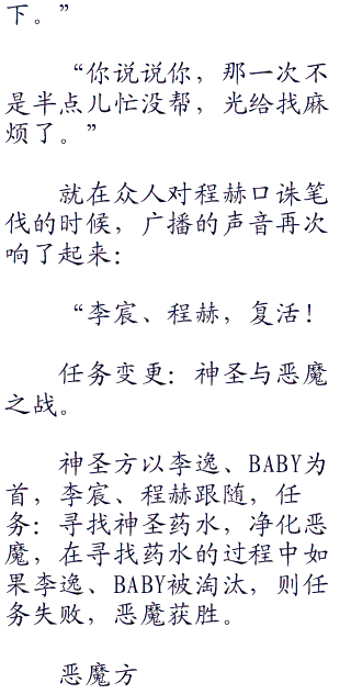 “你厉害!”李逸正准备复活两人的时候,广播的声音响了起来: