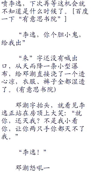 邓潮发誓,跑男录制以来他就没有这么爽过,一开始他只能使用水池里的药水进行埋伏,结果李逸启动了神圣与恶魔之战,他的武器库彻底开放,这个巨大的水囊和配套的武器、护罩都是刚刚发的,邓潮只要一想到李逸等人被自己喷到四处乱跑的模样,他就开心得不得了。